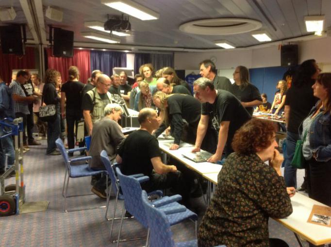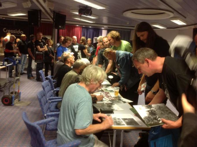 After the show, the band gathered to meet their fans and sign autographs. The queue to meet the band snaked around the room and out along the corridor below deck. The band met with fans, posed for photographs and signed CDs, albums and T-shirts.